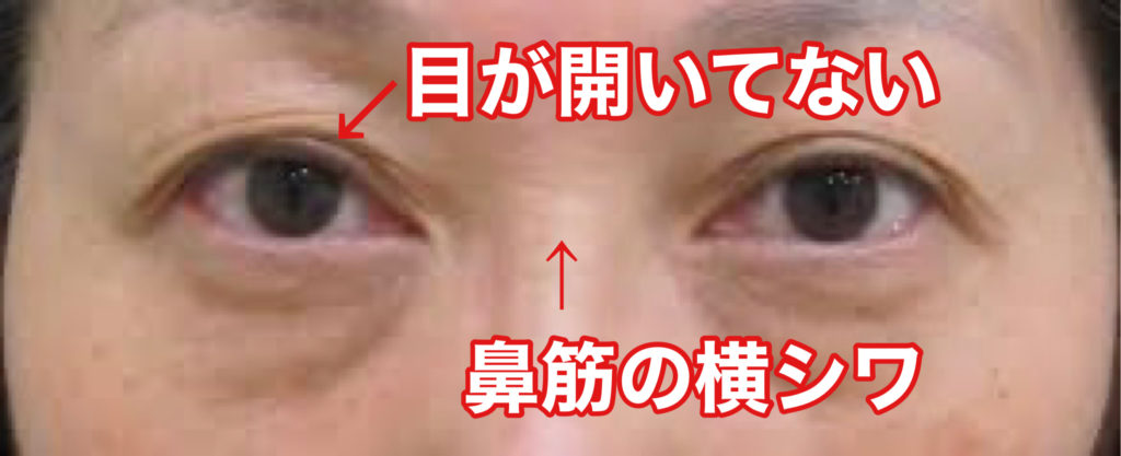 目が開かなくなる→鼻筋に横シワがくっきり入るという最悪のセットになることがほとんどですな。